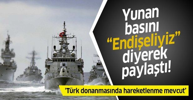 Yunan medyası 'Çanakkale Boğazından geçen Türk donanmasına ait 3 fırkateyn G.Ege'ye doğru yol alıyor. Gemiler şu anda Sakız Boğaz'ında' haberini endişe içinde paylaştı.