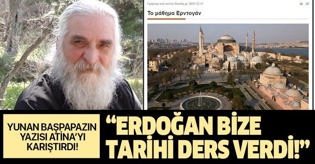 Atina Üniversitesi Teoloji Fakültesi Öğretim Görevlisi, eski Yunanistan Yüksek Mahkemesi Avukatı Başpapaz Lambros Fotopulos "Erdoğan'ın Dersi" başlıklı bir yazı yayınlayarak Yunanistan hükümetini ağır eleştiriler yöneltti. Ayasofyai Kebiri Cami Şerifi'nin ibadete açılmasından bahseden Fotopulos, Cumhurbaşkanı Recep Tayyip Erdoğan'ın açılıştaki duruşuna değindi. Yunan papaz yazısında Ortodoks camiasının Ayasofya'da ayin yapmaya layık olmadığını ve Cumhurbaşkanı Recep Tayip Erdoğan'ın Davut Peygamber ve imparatorlar gibi dinin aslına uygun bir şekilde dua ettiğini ifade etti.