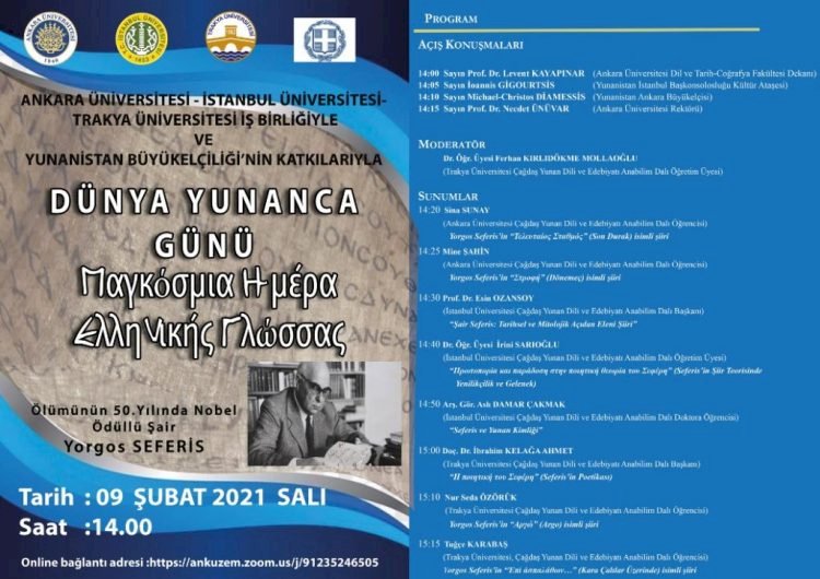 "Üniversitemiz ev sahipliğinde, İstanbul Üniversitesi ve Trakya Üniversitesi işbirliğiyle, Yunanistan Ankara Büyükelçiliği’nin katkılarıyla 09 Şubat 2021 Salı günü saat:14.00’de internet ortamında “Dünya Yunanca Günü” etkinliği gerçekleştirilecektir."