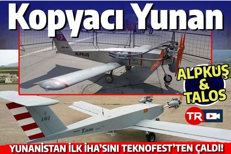 Atina'da S.A.S. Technology firması tarafından geliştirilen ve uçuş görüntülerine yer verilen TALOS isimli aracın 2021 TEKNOFEST'te sergilenen ALPKUŞ İHA'nın birebir kopyası olduğu ortaya çıktı.