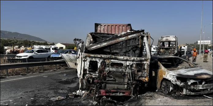 İzmir'de zincirleme kaza: Çarpışma sonucu yangın çıktı!