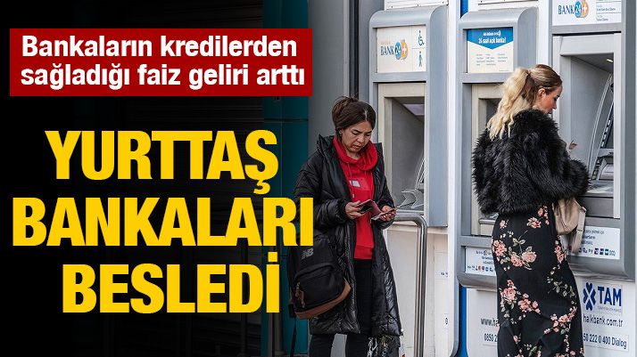 Bankacılık Düzenleme ve Denetleme Kurumu’nun (BDDK) verilerine göre bankaların faiz geliri Ocak-Temmuz döneminde 4 trilyon 567 milyar 695 milyon liraya ulaştı. Bankaların faiz gelirlerinin yüzde 63’ünü kredilerden alınan faizler oluşturdu. Yurttaşlar, bu yılın ilk yedi ayında bankalara 667,8 milyar TL faiz ödedi. Bu tutarın 391 milyar 728 milyon TL’lik bölümü bireysel kredi, 276 milyar 96 milyon TL’si de kredi kartı borçlarından oluştu.