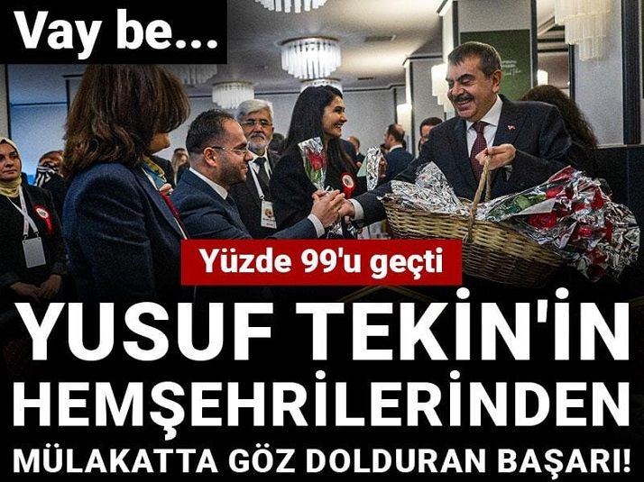 Ankara’da 15 bin öğretmen kura ile atandı. Milli Eğitim Bakanı Yusuf Tekin’in memleketi Erzurum’da adayların büyük bir başarı gösterdiği ortaya çıktı. Tekin'in memleketlisi 100 öğretmen adayı mülakat sınavına girdi. Tekin'in hemşehrilerinin 99’u sınavı kazandı ve atamaları yapıldı.