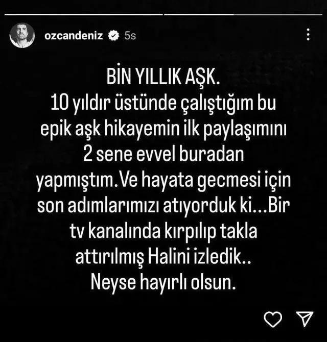Hem yer aldığı projeleri hem de özel yaşamıyla sık sık gündeme gelen ünlü oyuncu Özcan Deniz, bu defa çalıntı senaryo i-ddiasıyla gündeme geldi. Ünlü oyuncu sosyal medya hesabı üzerinden bir paylaşımda bulundu ve 10 yıldır üzerinde çalıştığı senaryonun çalındığını i-ddia etti.