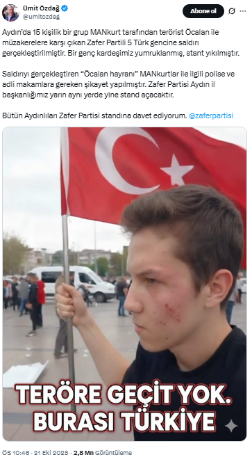 Özdağ, söz konusu saldırıda yüzünden yaralanan gencin fotoğrafını paylaştı. Ancak bu fotoğrafta yapay zekâ ile düzenleme yapıldığı ve gencin eline bir de Türk bayrağı eklendiği görüldü.