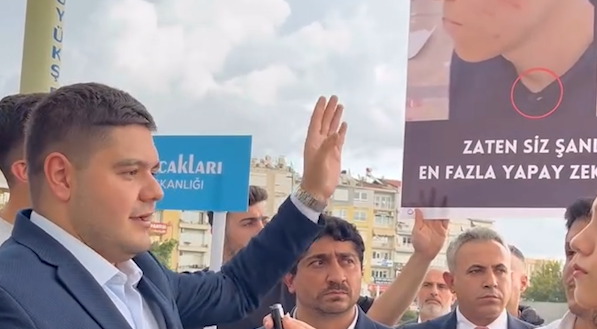 Saldırının ardından bugün kent meydanında basın açıklaması yapan ülkücüler, söz konusu paylaşımı işaret ederek 'yapay zekâ' savunması yaptı.