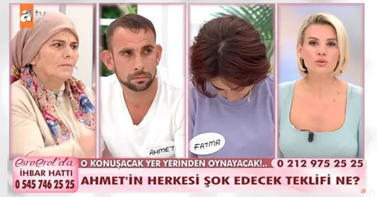Ahmet de Esra Erol'un programında yaşananların kurgu olduğunu iddia etti. Erol’un programında zorla konuşturulduğunu iddia eden 2 çocuk babası Ahmet, "Fatma onları mecburiyetten söyledi" ifadelerini kullandı.