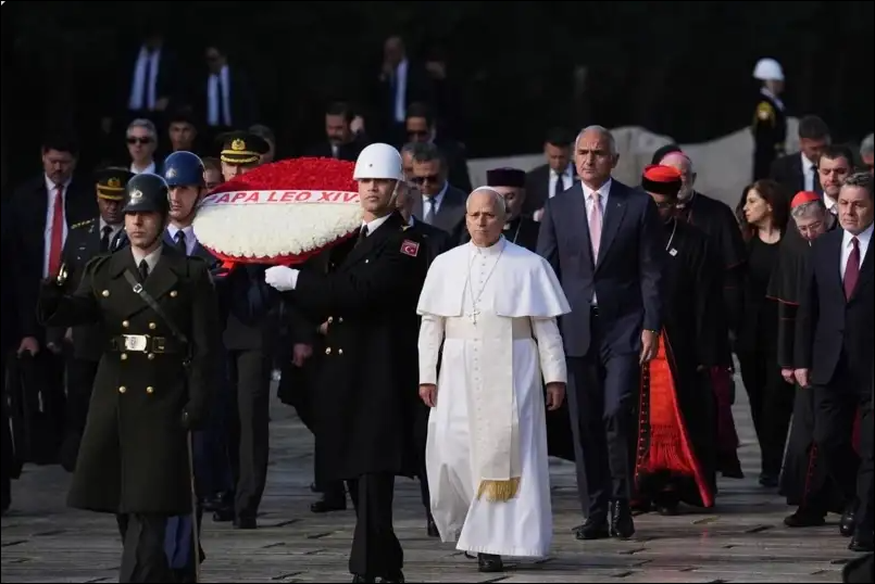 Papa 14. Leo, göreve geldiği ilk yurt dışı ziyaretinde Türkiye’ye gelerek Anıtkabir’i ziyaret etti, Cumhurbaşkanı Erdoğan ile görüşen Papa 14. Leo, “Bu ülke ve halkı için bolca barış ve refah diliyorum” dedi.