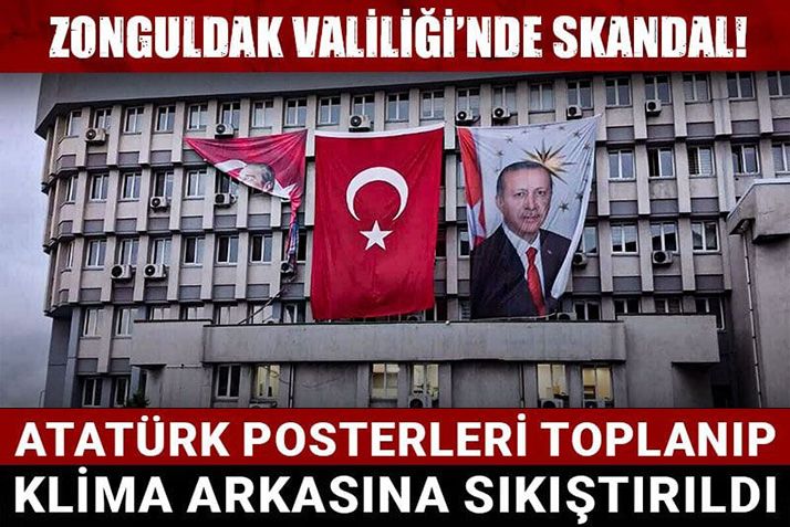 Zonguldak Valiliği binasının üç cephesine, 29 Ekim Cumhuriyet Bayramı dolayısıyla Atatürk ve AKP'li Cumhurbaşkanı Erdoğan'ın posterleri ile Türk bayrağı asıldı. Ancak Valilik önünde saat 13.00'te başlayacak resmi tören için hazırlık yapıldığı sırada Atatürk posterlerinin asılı olduğu yerde toplanarak, binadaki klima dış ünitesinin arkasına sıkıştırıldığı dikkati çekti.