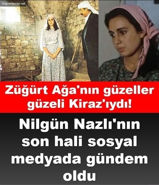 Yeşilçam'ın unutulmaz filmlerinden biri olan Züğürt Ağa'da hayat verdiği Kiraz karakteriyle hafızalarımıza kazınan Nilgün Nazlı ekranlardan uzak bir hayat sürüyor. Züğürt Ağa filmindeki saflığı ve güzelliğiyle dikkat çeken Nilgün Nazlı çok az filmde rol almasına rağmen unutulmadı. Nilgün Nazlı'nın son hali sosyal medyada gündem oldu... Haberimizin devamını okumak için Lütfen sonraki sayfaya geçiniz..